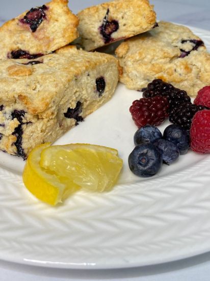 Needing dairy-free and egg-free? We got you covered. This box includes two three-packs each of Marie Antoinette’s Lemon Blueberry Vegan Scones (lemon-flavored, flaky and filled with plump blueberries and chia) and Marie Antoinette’s Mixed Berry Vegan Scones (chia, blueberries, raspberries and blackberries).